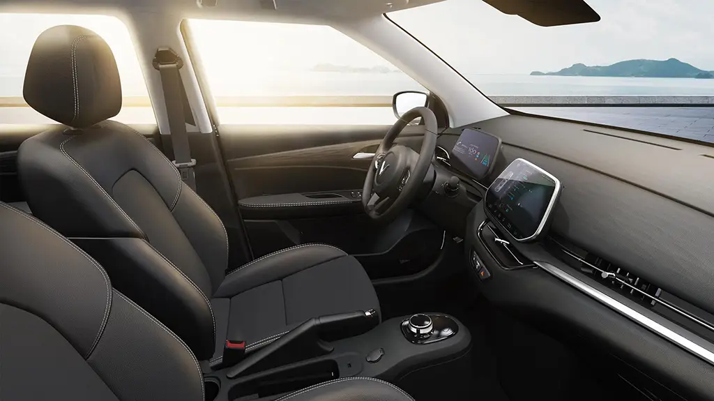 Bên trong, VF5 được thiết kế với không gian rộng rãi và tiện nghi cho 5 người. Cabin được bọc bằng các vật liệu cao cấp, tạo cảm giác sang trọng và dễ chịu. Màn hình giải trí trung tâm lớn tích hợp nhiều tính năng giải trí hiện đại, cùng với hệ thống âm thanh chất lượng cao, mang đến trải nghiệm thư giãn tuyệt vời cho hành khách. Hệ thống điều hòa tự động giúp duy trì nhiệt độ thoải mái trong mọi điều kiện thời tiết.