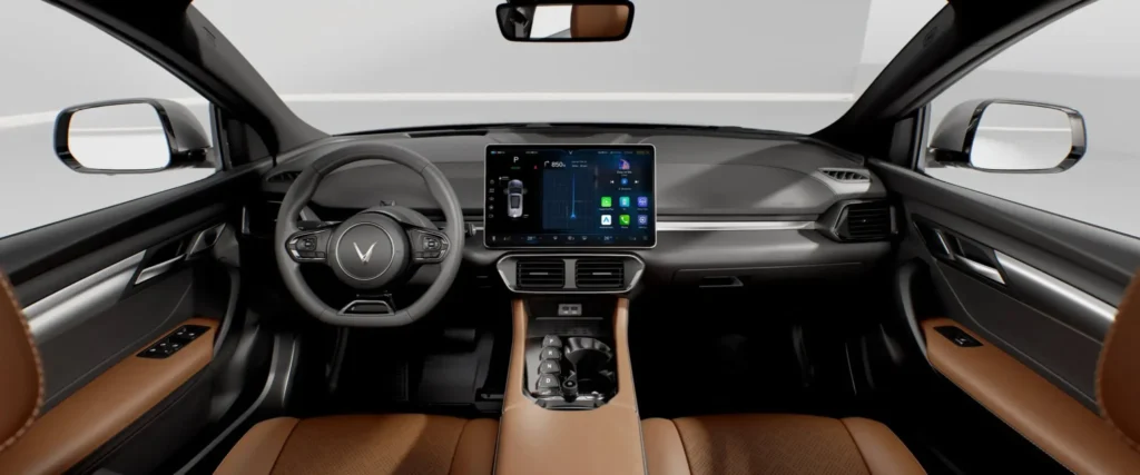Bên trong, VF8 được thiết kế với không gian rộng rãi và sang trọng. Cabin có khả năng chứa 5 người, được bọc bằng các vật liệu cao cấp, tạo cảm giác thoải mái và dễ chịu. Màn hình giải trí lớn 15,6 inch cùng hệ thống điều hòa tự động 2 vùng giúp người dùng dễ dàng kiểm soát các tính năng trong xe. Đặc biệt, hệ thống ghế được trang bị sưởi và thông gió, đáp ứng nhu cầu sử dụng trong mọi điều kiện thời tiết.